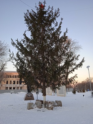 Обращаемся к Вам из Летного городка Энгельса. Новогодняя елка установлена безобразно. Забыли элементарно оградить, дети бегают.