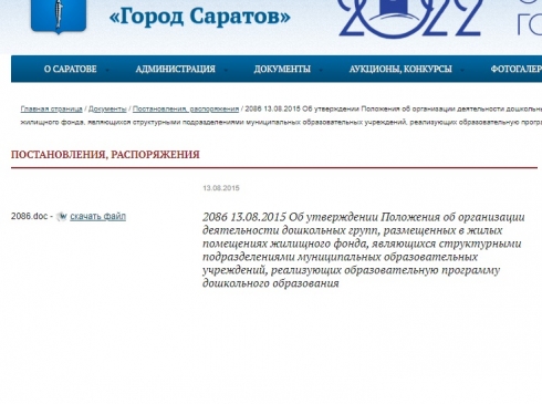 -предоставить для ознакомления название отдельного нормативного правового акта администрации МО "Город Саратов", по организации семейных групп индивидуальными предпринимателями ,