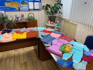 Сегодня рукодельницы, по традиции, привезли теплые вещи, связанные своими руками. Наши бабушки подготовили к этой поездке более 80 изделий: яркие и разнообразные жилетки, свитера, теплые носочки и шапочки. Детишки с удовольствием носят веселые нарядные вещи, созданные с особой любовью и заботой. Сейчас в «Специализированном доме ребенка для детей с органическим поражением центральной нервной системы» города Саратова проживает 35 детей в возрасте до 3х лет.