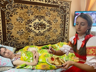 Для маломобильных проживающих угощение было организовано на местах. Девушки в народных костюмах под задорную музыку разносили подносы с блинами и медом в комнаты и холлы отделений.