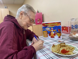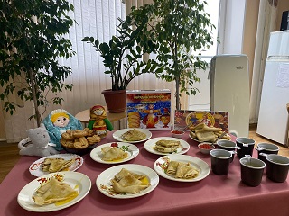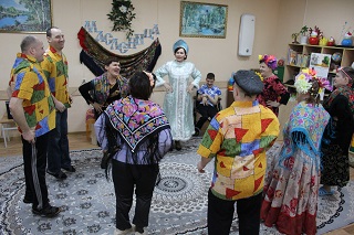 С самого утра 3 марта проживающие Энгельсского дома-интерната почувствовали особое праздничное настроение. На большой интерактивной панели, установленной в центральном холле, транслировались ролики о масленичных гуляньях, звучала веселая музыка. По внутреннему радио учреждения прошла рубрика «Широкая Масленица» об истории и традициях праздника.