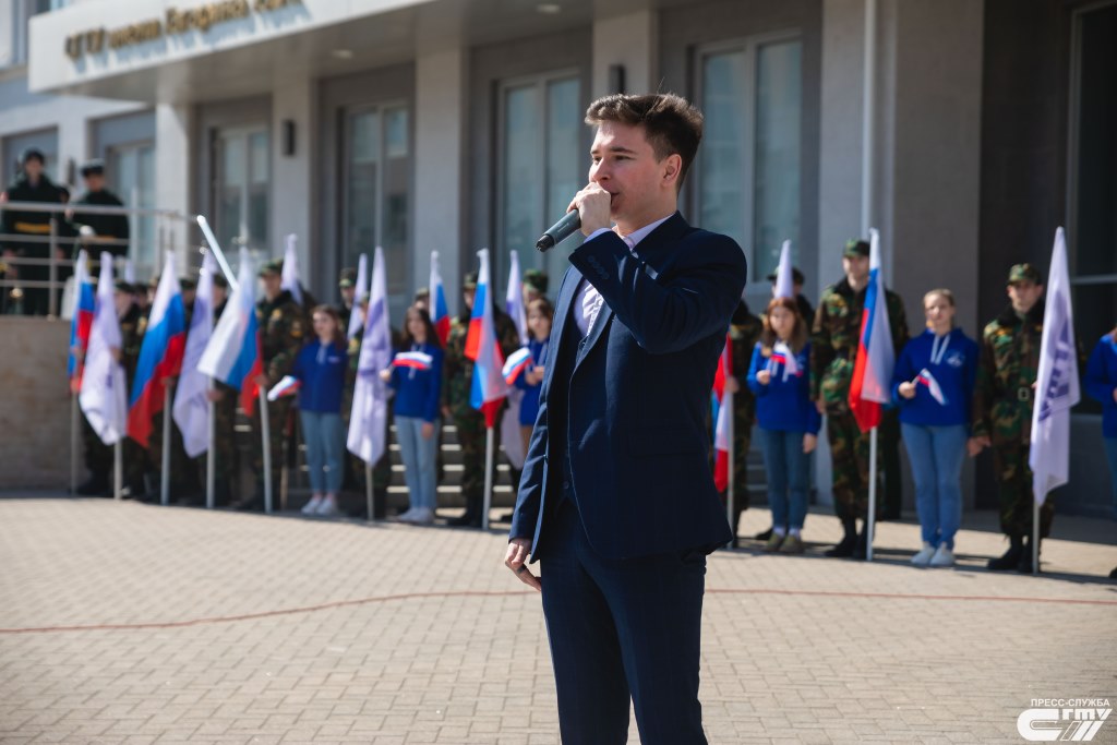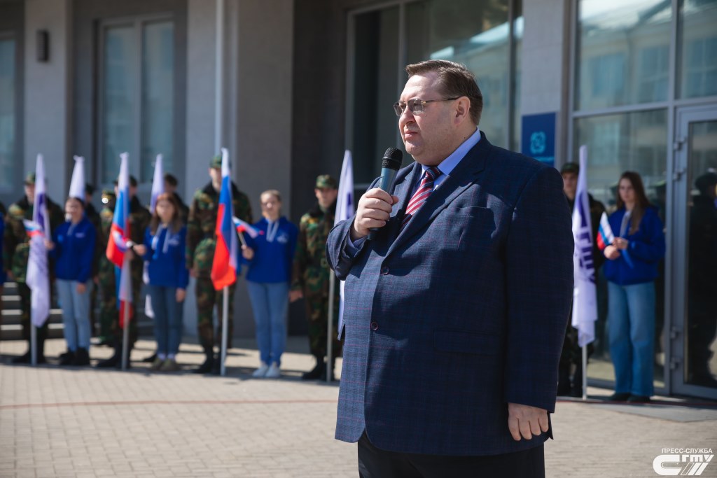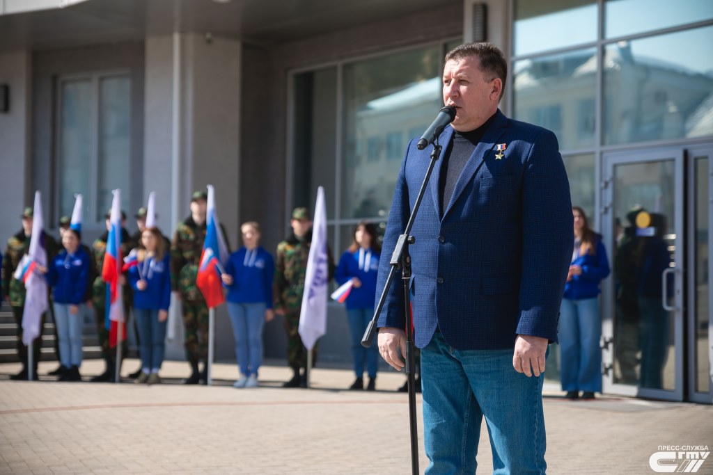 С приветственной речью к присутствующим и словами поддержки к студенческой молодежи обратился и.о. ректора СГТУ, доктор исторических наук, профессор, председатель реготделения «Российского военно-исторического общества» Сергей Наумов: «Сегодня, в этот поистине знаковый день, коллектив, студенты крупнейшего и старейшего технического университета со славной 90-летней историей поддержали действия Президента России, Верховного Главнокомандующего Вооруженными Силами Российской Федерации Владимира Владимировича Путина по проведению специальной военной операции на Украине. Уверен, что все цели, которые поставил наш глава государства, будут выполнены – Донбасс станет свободным, счастливым и благополучным. Люди, проживающие там, наконец-то смогут спокойно спать, работать, растить детей, любить и радоваться жизнью».