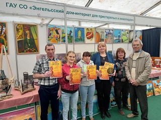 18 апреля проживающие и сотрудники Энгельсского дома-интерната встречали творческую делегацию, возвратившуюся со всероссийской выставки - ярмарки изделий народных художественных промыслов "Ремесленная изба", которая проходила в городе Волгограде. В рамках выставки организации и мастера народных художественных промыслов Волгоградской и Саратовской областей демонстрировали эксклюзивные изделия ручной работы, картины, украшения, пуховые и вязанные изделия, в том числе товары текстильной и легкой промышленности.