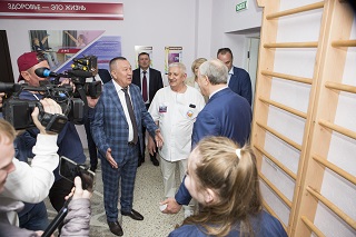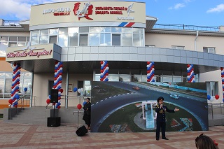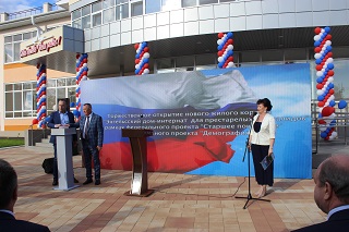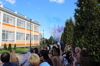 Затем директор учреждения Сергей Владимирович Сафошкин и генеральный застройщик, директор ООО «Стройстандарт» Андрей Вячеславович Захаров совершили торжественный пуск работы нового корпуса, нажав символическую кнопку и выпустив в небо дневной дымовой салют.