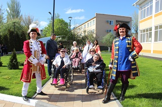 Почетные гости и друзья учреждения, пришедшие на праздник, с удовольствием прогулялись по благоустроенной территории дома-интерната и смогли сфотографироваться с персонажами эпохи императора Петра Первого и императрицы Екатерины Второй, положивших начало развитию в России системы социальной защиты. На большом экране, установленном на импровизированной концертной площадке, демонстрировались сюжеты о деятельности и достижениях учреждения.
