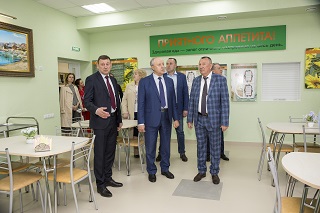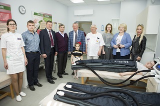 Директор Энгельсского дома-интерната пригласил всех желающих совершить экскурсию по новому корпусу. Вниманию посетителей были представлены благоустроенные холлы и жилые комнаты, физиокабинеты, зал лечебной физкультуры, обеденный зал, помещения для персонала. Сергей Владимирович обратил внимание, что жилые комнаты выполнены в формате мини-квартир, оборудованы мебелью, бытовой техникой и рассчитаны для проживания 1-го и 2-х человек: «Мы постарались создать такую атмосферу, чтобы нашим проживающим было комфортно и уютно, чтоб каждый чувствовал себя как дома. Оборудовали два современных физиокабинета, оснащенных новейшим медицинским оборудованием, позволяющим предоставлять озонотерапию, гипокситерапию, прессотерапию, ВЛОК терапию. Поддержание здоровья, при котором не требуется применение лекарственных препаратов, является одним из самых оптимальных вариантов для пожилых людей».