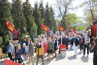 Апогеем праздника стало шествие «Бессмертного полка» по благоустроенной территории дома-интерната. Проживающие и сотрудники вместе пронесли флаги и портреты ветеранов Великой Отечественной войны – своих родственников и проживавших ранее в доме-интернате. Во главе с директором учреждения Сергеем Владимировичем Сафошкиным делегаты возложили Памятный венок и цветы к Вечному огню. Сергей Владимирович обратился ко всем со словами: «Уважаемые друзья, сегодня мы вспоминаем подвиг наших соотечественников в годы Великой Отечественной войны. Это возможность поблагодарить наших дорогих ветеранов и пожелать им здравия, вспомнить павших и склонить перед ними голову. Мы бесконечно благодарны им за мирное небо над головой, за уверенное будущее наших детей и внуков».