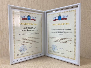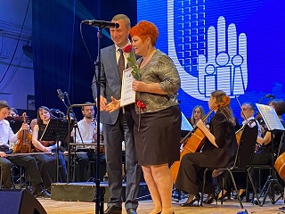 На областном торжественном мероприятии, которое проходило в Саратовской областной филармонии им.А.Шнитке, временно исполняющий обязанности Губернатора Саратовской области Роман Бусаргин вручил сотруднице учреждения Елене Павленко Благодарность за многолетний добросовестный труд и высокий профессионализм в работе.