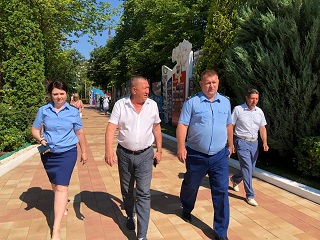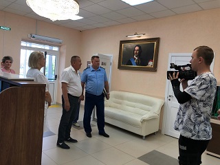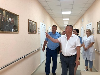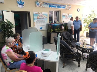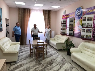 Далее директор дома-интерната Сергей Владимирович Сафошкин пригласил представителей надзорных органов совершить экскурсию по территории и корпусам учреждения. Владимир Иванович и его помощник прошлись по благоустроенной территории, осмотрели новый жилой корпус, посетили тренажерную площадку и оздоровительный центр «Гармония», ознакомились с творчеством проживающих дома-интерната.
