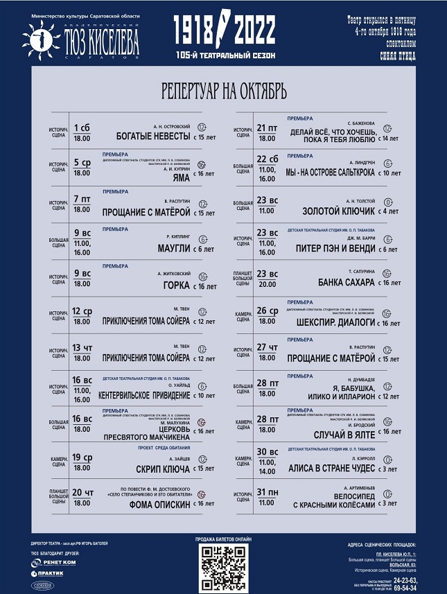 Репертуар Саратовского ТЮЗа на октябрь 2022 года