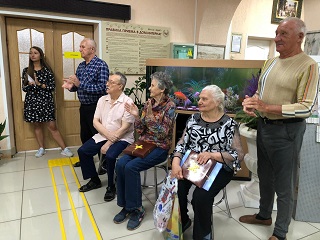 Директор дома-интерната Сергей Владимирович Сафошкин тепло поздравил юбиляршу и пожелал ей здоровья и долголетия. А также подарил памятный подарок и цветы.