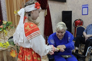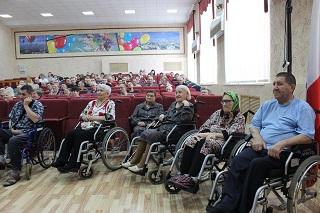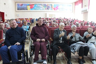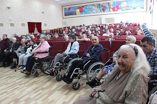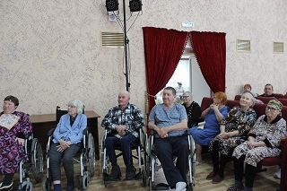 Накануне на сцене дома-интерната прошло выступление самодеятельных артистов дома-интерната. Вокальный коллектив «Надежда» подготовил новый репертуар и исполнил песни уже полюбившиеся зрителям. Со сцены звучали лирические стихи, сотрудница дома-интерната Елена Марданова исполнила под аккомпанемент домбры народные казахские песни. Аплодисментами зрители поддержали выступление вокально-инструментальной группы «Пчелы» и почти пустились в пляс под задорный народный танец «Калинка-малинка» инклюзивного танцевального коллектива дома-интерната «Антарес».