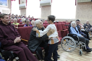 В этот раз проживающих Энгельсского дома-интерната радовал ансамбль «Покровские ребята» из муниципального общеобразовательного учреждения «Средняя общеобразовательная школа № 12 имени Героя Советского Союза Суханова Виталия Федоровича», которым руководит педагог Людмила Пудан.
