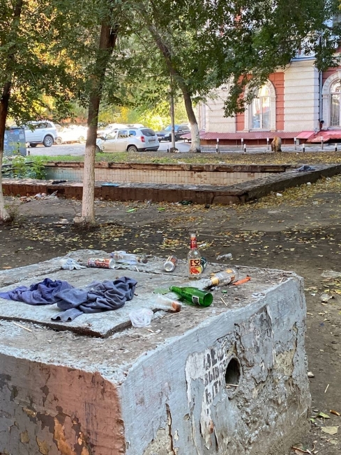 Просим Вас оказать содействие в благоустройстве данного "скверика" и организовать выходы сотрудников правоохранительных органов, для обеспечения общественного порядка.