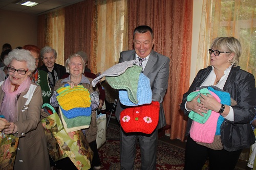 Участвуя в 2012 году в проекте «Благо Дарю», наши бабушки вязали жилетки для маленьких детишек в возрасте от 6 месяцев до 3-х лет. А в этом году они уже сами проявили инициативу и связали теплые вещи для малюток. Узнав об этой благотворительной акции, проживающие более молодого возраста, вновь присоединенного 3-го психоневрологического корпуса, с большой радостью приняли в ней участие и связали теплые шапочки и пинеточки.