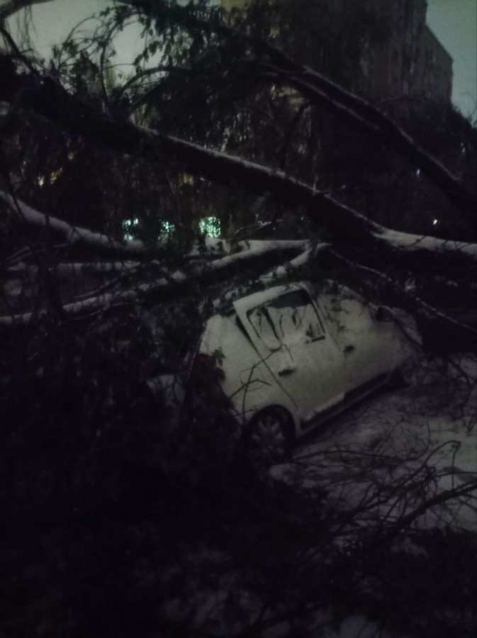 Есть также случаи падения деревьев, предположительно, из-за тяжести снега. В Ленинском районе из-за этого серьезно пострадал автомобиль, припаркованный возле дома по улице Мира. Еще в одном случае ветви дерева легли на окно жилого дома.
