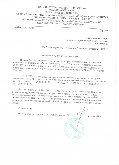 Неделю отсутствует отопление в жилом доме по вине ПАО Т Плюс