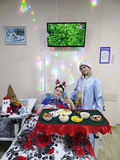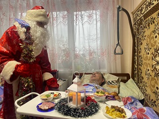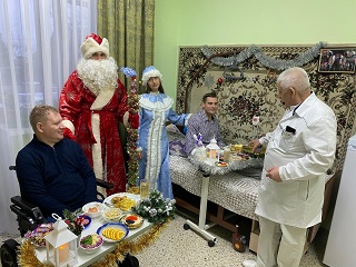 31 декабря свое шествие по холлам и отделениям 4х корпусов учреждения совершили настоящий Дед Мороз в сопровождении Снегурочки и сказочной свиты. В каждом отделении прошло небольшое, но веселое и зажигательное новогоднее представление. Поздравление немобильных граждан Дедушка Мороз и его сказочные помощники провели непосредственно в комнатах проживающих.
