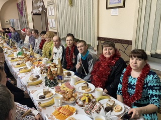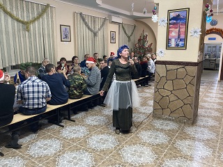 Новогодние каникулы также были очень интересные и насыщенные событиями. Каждый день проживающих всех 4 корпусов ждал очередной сюрприз: сказочные представления, мастер классы по изготовлению зимних поделок, конкурсы рисунков, веселые эстафеты и познавательные викторины. В сочельник творческий вокальный коллектив «Надежда» организовал для своих друзей рождественские посиделки.