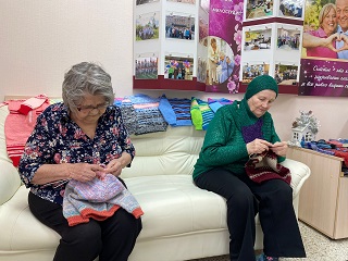 «Серебряные волонтеры» Энгельского дома-интерната уже более 10 лет дружат с воспитанниками и руководством дома Малютки. Участницы клуба прикладного творчества «Мастерица» вяжут и дарят детям теплые вещи: яркие и разнообразные жилетки, свитера, теплые носочки и шапочки. Детишки с удовольствием носят веселые нарядные вещи. В этот раз бабушки подготовили к поездке более 50 изделий, созданных с особой любовь и теплотой.