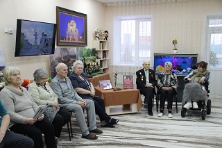 На большой интерактивной панели в главном корпусе дома-интерната проживающие просмотрели документальные хроники о защитниках Сталинграда и концерт с песнями военных лет. На внутреннем радиоузле дома-интерната прошла радиопередача «Город-герой Сталинград», которую подготовили сами проживающие. Радиоведущие подробно рассказали о том, как под Сталинградом закончилось победное наступление немецко-фашистских войск и началось их изгнание с территории Советского Союза.