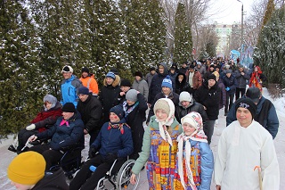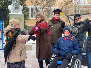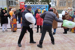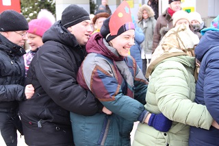 В этот раз в гости на проводы Масленицы в Энгельсский дом-интернат приехали воспитанники театральной студии «Фантазия» ДТДиМ г.Энгельса. Взрослые и дети от души вместе веселились, участвовали в конкурсах, перетягивали канат, бились на подушках, играли в снежки, плясали и водили хороводы. Самые активные участники конкурсов получили памятные подарки.