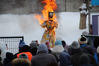 Как повелось еще в Древней Руси, так и в этот раз кульминацией праздника стало сжигание чучела, олицетворяющего собой Зиму. Его совместно изготовили сотрудники и проживающие учреждения.