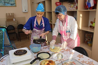Для молодых инвалидов с ментальными нарушениями здоровья из 3-го корпуса прошел мастер класс по выпеканию блинов «Блинная история». Мероприятие, вызвавшее восторг у проживающих, было направлено на решение сразу несколько задач: обучение кулинарному делу, развитие творческих задатков и приобщение к эстетике питания.Молодые хозяюшки проявили все свои творческие и кулинарные способности, в результате получились блюда похожие на изысканные кондитерские изделия. После мастер класса состоялось чаепитие, во время которого девушки хозяйки угощали своими блинами всех желающих.