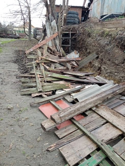 В этом году ее соседи решили капать траншеи для забора из отработанных шин. В результате чего ее плохенький забор рухнул, так как его подкопали. Забор упал на ее насаждения. Меры к соседям никто не принимает. Забор лежит на насаждениях с 13.04.2023 г.