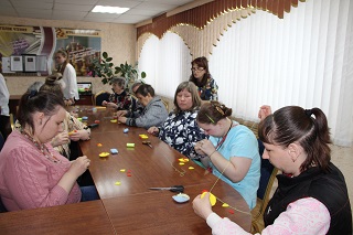 В уютном читальном зале главного корпуса прошел мастер-класс по изготовлению пасхальных сувениров. Его провели учащиеся МОУ СОШ №1. Вместе с ребятами проживающие дома-интерната сшили ярких цыплят и веселых зайчиков. Дети и взрослые очень интересно и увлекательно провели время вместе, получили массу положительных эмоций и прекрасные памятные сувениры, сделанные своими руками.