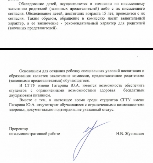Для получения бесплатного питания студентам с ОВЗ саратовских ВУЗов и колледжей необходимо заключение ПМПК о статусе обучающегося с ОВЗ.