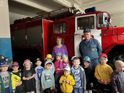 Воспитанники средней группы «Божья коровка» детского сада №17 «Рождественский» вместе с родителями и педагогами побывали на экскурсии в пожарной части №52 по охране Петровска.