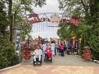Прогулка-экскурсия началась от Аллеи Славы – мемориального комплекса в честь ветеранов Великой Отечественной войны и воинов-интернационалистов. В этом году, в канун Дня Великой Победы, на Аллеи установили новые стенды – в память о героях-земляках, погибших в специальной военной операции.