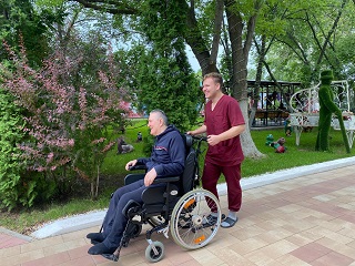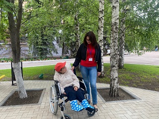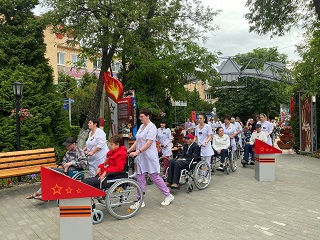 Более 100 инвалидов-колясочников, проживающих в ГАУ СО «Энгельсский дом-интернат для престарелых и инвалидов» совершили познавательную прогулку-экскурсию по открытой территории учреждения. В передвижении колясок маломобильным проживающим помогали врачи, медсестры, социальные работники и сотрудники, проходящие альтернативную государственную службу в учреждении. А инвалиды на колясках с электроприводом передвигались самостоятельно.