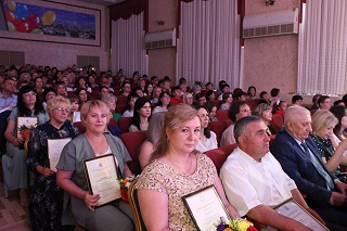 Высокопоставленные почетные гости провели процедуру награждения сотрудников учреждения: 1 работнику объявлена Благодарность Губернатора; Благодарственные письма от Уполномоченного по правам человека в Саратовской области получили 4 человека и 7 человек от Председателя Саратовской областной Думы; от министерства труда и социальной защиты области 7 сотрудникам объявлена Благодарность; от Главы Энгельсского муниципального района Благодарность получили 3 человека и 3 сотрудникам вручены Благодарственные письма; 15 человек награждены Почетными грамотами Энгельсской районной территориальной организации Общероссийского Профсоюза работников государственных учреждений и общественного обслуживания; 24 сотрудникам вручены Почетные грамоты Энгельсского дома-интерната.