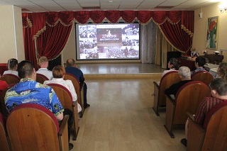 В актовом зале 3 корпуса дома-интерната проживающие смогли посмотреть презентацию «И память. И подвиг. И боль на века». Ведущая с помощью видео «Набат войны нам вновь стучит сердца» рассказала зрителям о начале Великой Отечественной войны, о тех испытаниях, которые выпали на долю советского народа. Участники мероприятия прослушали сообщение Левитана о начале войны, а также песни и стихи военных лет.