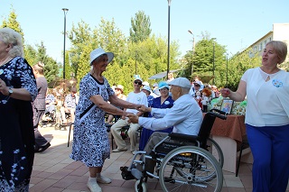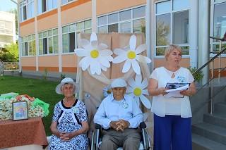 Утром проживающие и сотрудники 1,2 и 4-го корпусов дома-интерната собрались на благоустроенной территории учреждения, украшенной символом праздника-ромашками, где их ждала праздничная программа с конкурсами, викторинами и, конечно, красивой музыкой. Постояльцы с удовольствием услышали историю праздника, узнали о красивой легенде о православных святых Петре и Февронии Муромских.