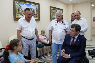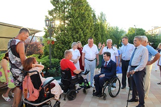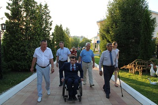 7 июля в Энгельсском доме-интернате встречали делегацию руководителей общественных организаций инвалидов из 7 регионов России: Мордовии, Удмуртии, Кировской, Пензенской, Самарской, Белгородской областей и Марийской республики. Возглавил делегацию депутат Государственной Думы Федерального собрания РФ, председатель Всероссийского общества инвалидов, Михаил Борисович Терентьев. Михаил Борисович приехал с визитом в Саратовскую область на открытие Молодежного Фестиваля для молодых инвалидов «Все в наших руках» «Когда мы едины – мы непобедимы».