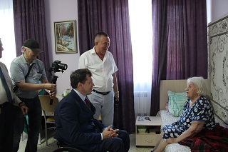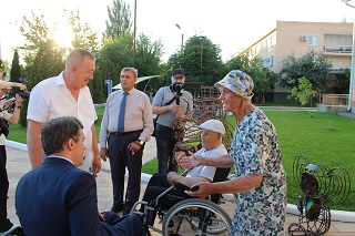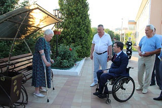 Михаил Борисович пообщался с проживающими, посетил старейшую 100-летнюю долгожительницу учреждения –Анну Александровну Жданову, которая удивила своим настроем обязательно отметить 120-ти летний юбилей. Также состоялась интересная беседа с самой юной жительницей - 18-ти летней Анной Кривоножкиной, которая раньше жила в детском доме-интернате. Аня рассказала о том, как интересно и по-семейному комфортно ей живется в новом, ставшем родном доме.