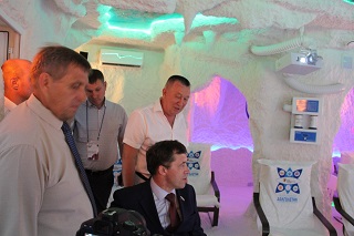 Далее посетили уличную спортивную площадку, оснащенную тренажерами и безопасным специализированным покрытием, а также оздоровительный центр «Гармония», с оборудованной современной физиозоной и соляной пещерой, комплексно позволяющими гражданам безмедикаментозно поддерживать здоровье.