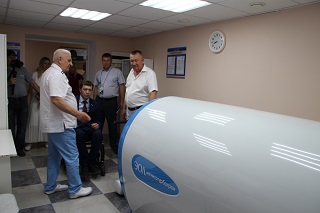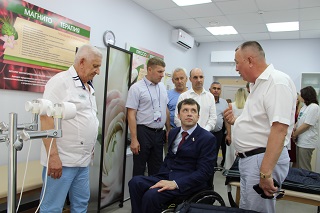 В новом корпусе директор учреждения показал столовую, комнату для гостей, зал лечебной физкультуры, кабинет массажа и два физиокабинета, оснащенных высокоэффективным современным оборудованием и рассказал о новейших способах лечения, применяемого для сохранения здоровья и активного долголетия пожилых граждан и инвалидов.