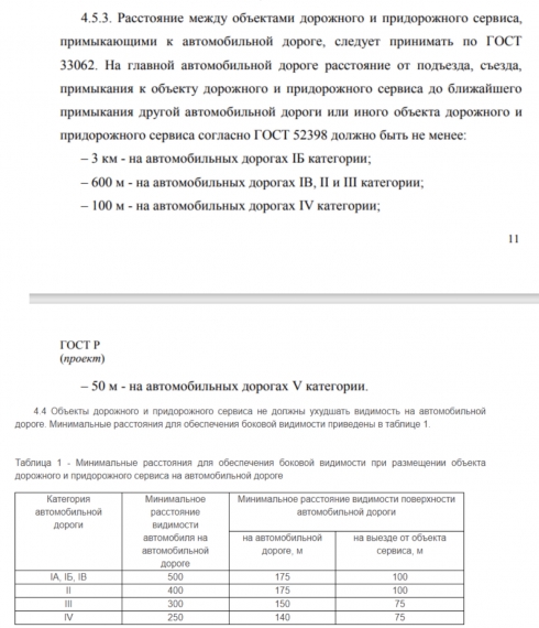 Ниже прикреплены нормы ГОСТ, свидетельствующие о том, что данные переходно-скоростные полосы невозможны априори. От ближайшего перекрестка не должно быть 20 метров тормозной линии до съезда к объектам дорожного сервиса, однако почему-то владельцев комплексов «Эберс» и «Теремок» это не касается, возможно в действиях кого-то из тех, кто осуществлял проектировку переходно-скоростных полос и владельцев данных комплексов присутствует некая коррупционная составляющая.