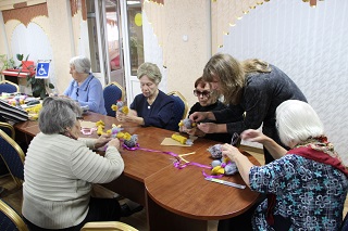 Для любителей вязания, как начинающих, так и опытных, проживающих в Энгельсском доме-интернате, сотрудники модельной библиотеки Центра народного творчества «Дружба» приготовили интересную познавательную программу: рассказали об истории праздника с показом презентации, организовали выставку книг соответствующей тематики и провели мастер-класс по изготовлению куклы Берегини. Бабушки же в свою очередь рассказали о творческом клубе «Мастерица», который действует в учреждении уже много лет и показали детские вещи, которые они вяжут для маленьких детей и ежегодно отвозят в Саратовский дом Малютки.