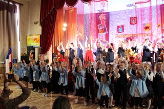 Большая дружная семья дома-интерната собралась в уютном актовом зале главного корпуса