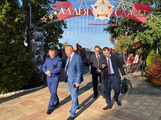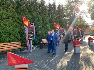 Гости проследовали к мемориальному комплексу «Аллея Славы», на котором горит Вечный огонь в память о героях, защищавших свою Родину в годы Великой Отечественной войны, в вооруженных конфликтах и СВО.