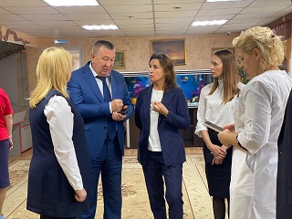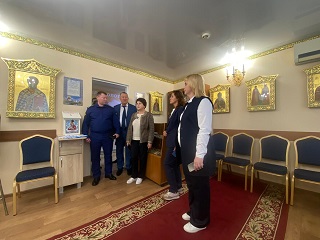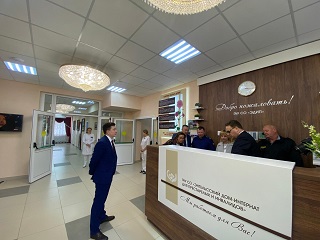 В главном корпусе делегация побывала в комнатах психологической разгрузки, оснащенных новейшим релаксационным оборудованием, Домовом Храме великомученика и Целителя Пантелеимона, медицинском блоке, в котором проходят профильные приемы врачей-специалистов, читальном зале. Посетили пищеблок и столовую.