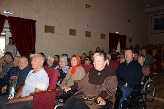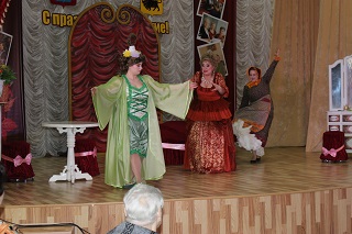 В это время на сцене актового зала для проживающих и сотрудников дома-интерната выступали артисты Балашовского драматического театра. Гости с удовольствием присоединились к просмотру водевиля «Беда от нежного сердца». Зрители увидели искромётную историю о молодом человеке, готовом предложить руку и сердце каждой девушке с которой встречается, и хитрой уловке отца, помогающей ему сделать правильный выбор. Прекрасная игра актеров была оценена продолжительными овациями зрителей, и, конечно цветами.