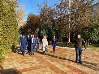 Приехавших встречали министр труда и социальной защиты Саратовской области Денис Олегович Давыдов и директор дома-интерната Сергей Владимирович Сафошкин, который пригласил гостей совершить экскурсию по территории и корпусам учреждения.