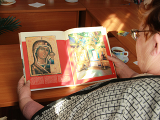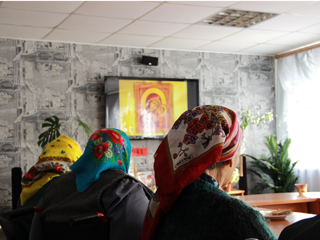Вниманию жителей дома-интерната был представлен фильм «Казанская икона Божией Матери», рассказывающий об истории перемещений этой святыни по Руси и о чудесах, сотворимых ею. В память чудесного освобождения Москвы во второй четверти 17 века на Красной площади был воздвигнут прекрасный Казанский собор, а спустя два века был установлен памятник героям-освободителям Кузьме Минину и Дмитрию Пожарскому.