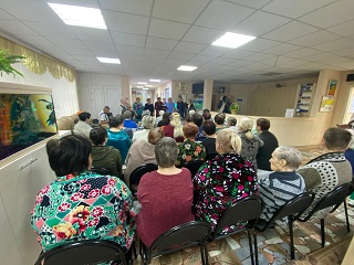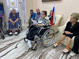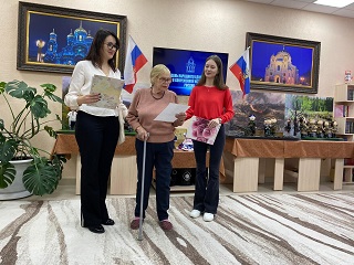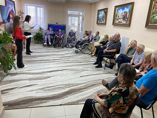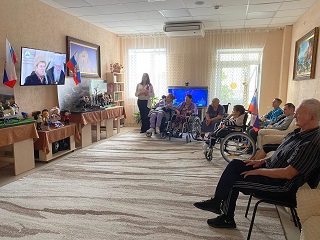Для проживающих первого, второго и четвертого корпусов провели познавательные мероприятия с чтением стихов, пением песен, показом презентации «Мы едины» и документального фильма «Благодарная Россия», вокальный коллектив «Надежда» исполнили для проживающих патриотические песни о России. Как всегда, долгожданным был концерт воспитанников детской школы искусств № 4, которые дарили свои таланты со сцены актового зала главного корпуса учреждения.